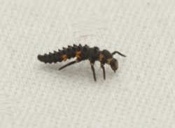 The adult female and larva look very similar at first sight, so you might need to look closely.